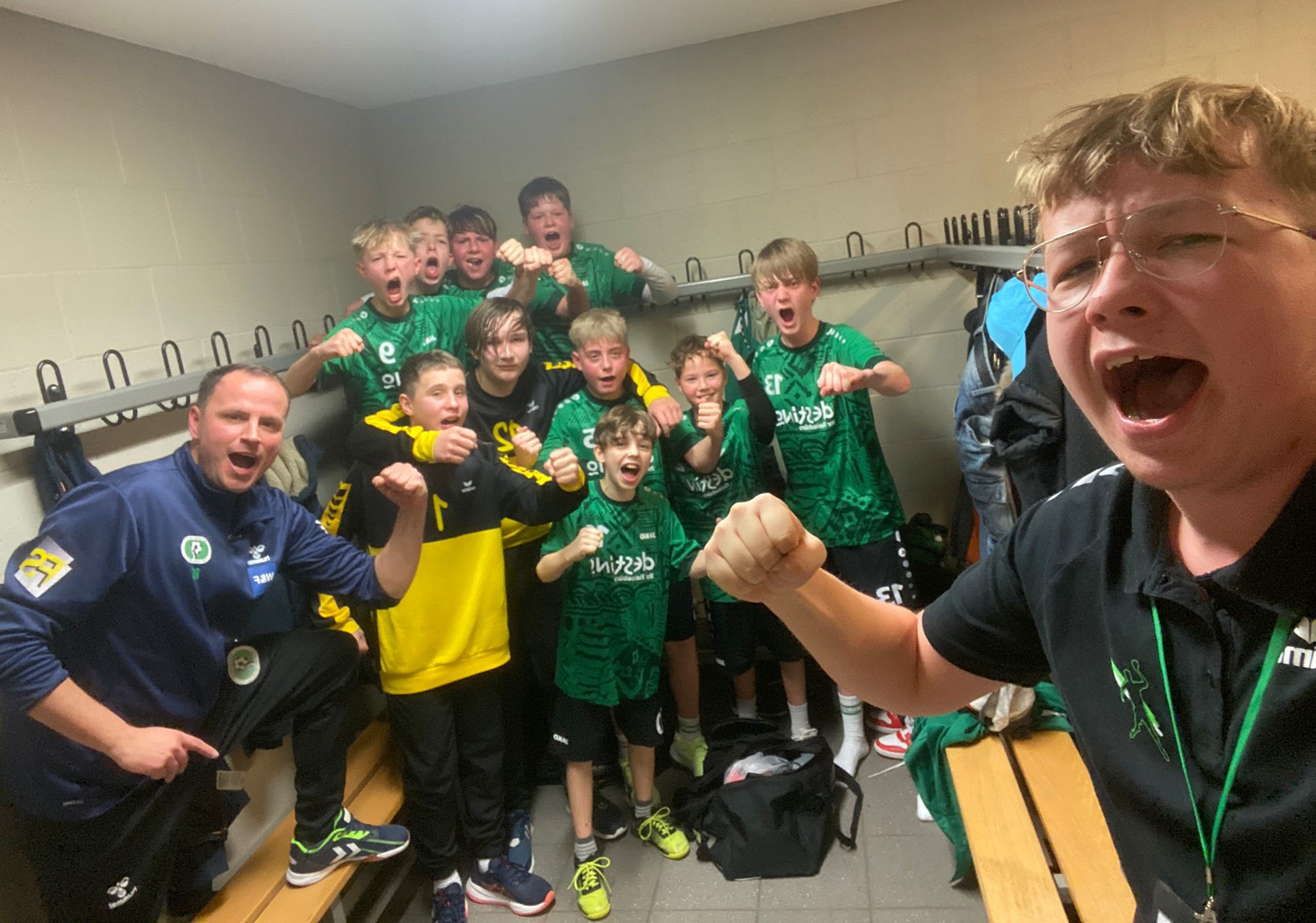 Jelle hielt weiter seinen Kasten sauber – nun endlich behielten wir vorne auch die Übersicht und kamen zu zielgerichteten, eindeutigen Torabschlüssen und konnten am Ende über ein 28:21 Auswärtserfolg jubeln.