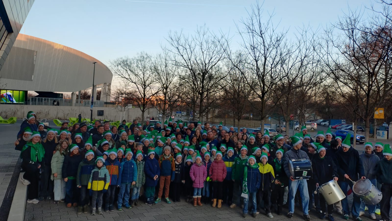 Nach der Ankunft in Dresden gab es direkt das erste Highlight: grün-weiße Weihnachtsmützen für alle in den Farben des Vereins - damit war klar, wer hier unterwegs ist. Die Trommler aus unseren Jugendmannschaften