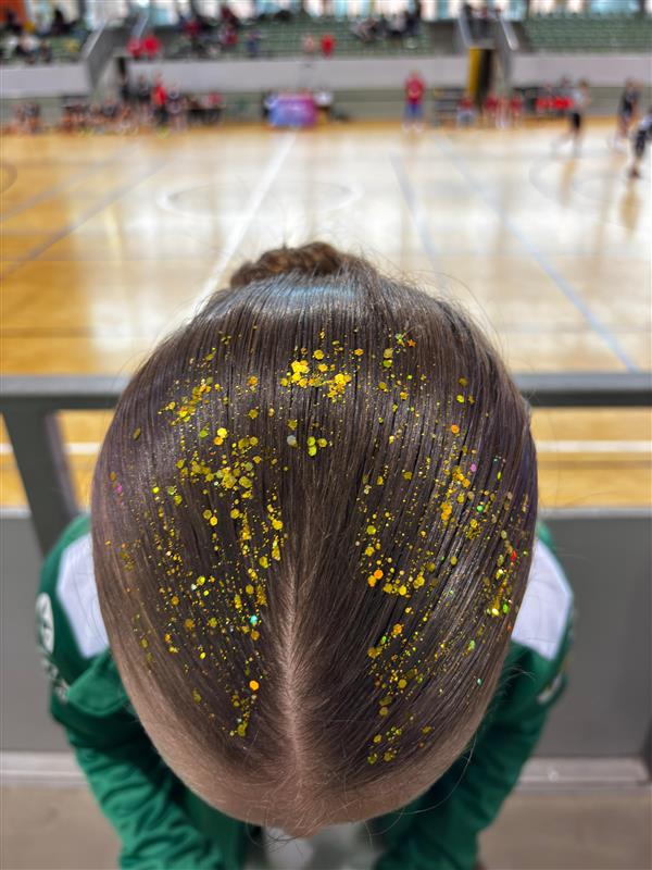 In Cottbus angekommen war schon alles super vorbereitet. Hier vorab schon einmal einen großen Dank an die Organisatoren vom HVB und an den LHC Cottbus. Wir zogen unsere Trikots an (wir vertraten die Faröer Inseln) und bevor es in die große Lausitzarena zum Warm Up ging wurden allen noch die Haare präpariert (siehe Foto). Wir mussten leider auf unsere Spielerin Tabea Liebscher verzichten, die sich 2 Wochen zuvor bei einem Spiel in Potsdam verletzt hatte. Jetzt hieß es... Alle spielen für Tabea.