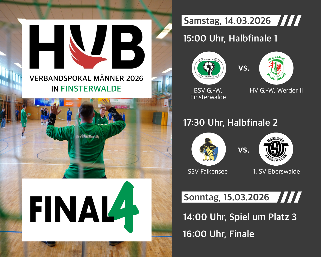 Am kommenden Wochenende blickt der Handball in Brandenburg nach Finsterwalde, wenn bei uns das Final Four des HVB-Verbandspokals ausgetragen wird. Für uns als BSV Grün-Weiß Finsterwalde ist das nicht nur organisatorisch eine schöne Sache, sondern vor allem eine riesige sportliche Chance. Denn nach dem vergangenen Jahr ist da noch eine Rechnung offen.